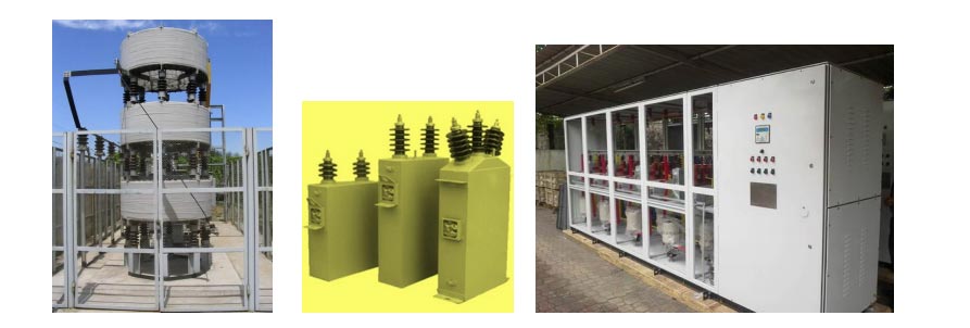 | TECHNICAL DATA: Capacitors: 1.1 KV to 40 KV, Single phase / Three phase assembled banks in single stage up to 12 MVAR. Low dielectric losses 0.2 W /KVAR, excellent performance and reliability, high current handling capacity, longer electrochemical life span, environment friendly with high thermal stability. |