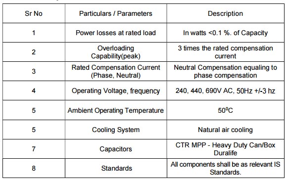 | Benefits: Optimize KVAH closer to the large capacity loads both at utility metering and feeder side. Eliminate power Factor penalties and gain incentives. Savings in maximum Demand Charges, Reduction in current drawn nearer to load helps in lowering the conductor size. Increased life of switchgears due to reduced temperature and I 2R losses. Improved voltage regulation. Reduced space requirement. Easy and lower maintenance cost. | |