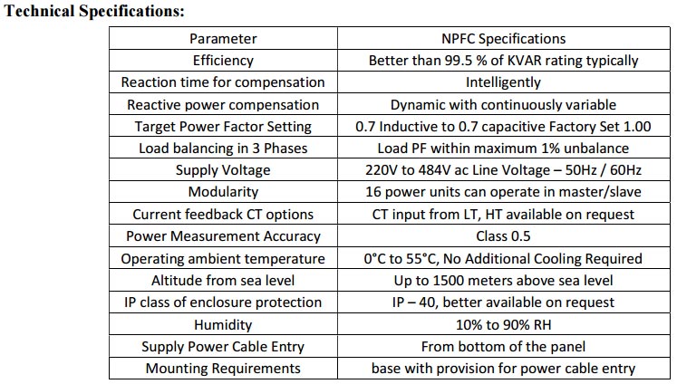 | Need to be designed only after the study of load patterns trends of the feeders / substations. During design the Fixed base load + Long duration variation and short duration variation is considered along with their own requirement of reactive power. For Fixed base loads, Fixed compensation with all protections, for long term variable APFC and for short term variation soft switched IPFC are housed together and controlled through single smart APFC Controller which helps to maintain the Power Factor guaranteed above 0.99. Here Soft Switched IPFC helps to reduce the Heavy Bank switching Operations up to 90 % due to its dynamic smart intelligence and helps to reduce switching transients, enhance life of overall system. Further to this NPFC and Dynamic Reactive Power Compensators are also coupled together enable to optimize KVAH and maintain KWH and KVAH difference to minimum and the ultimate performance of hybrid systems. | |